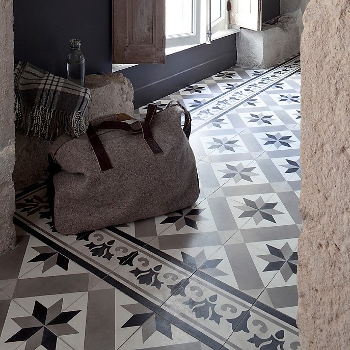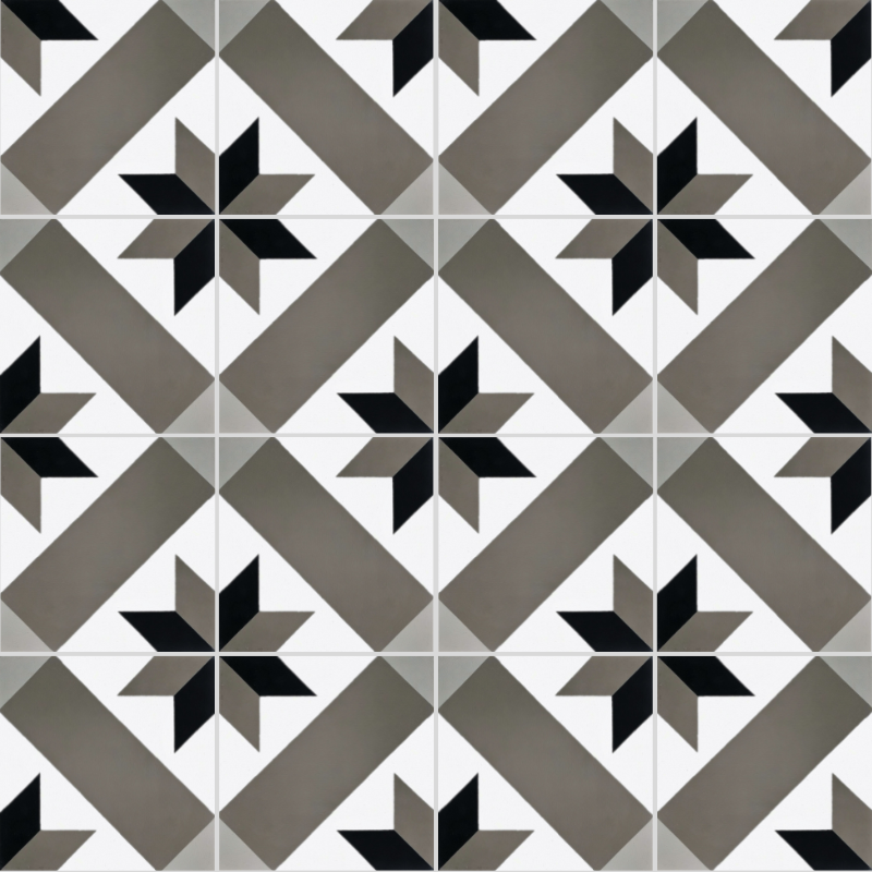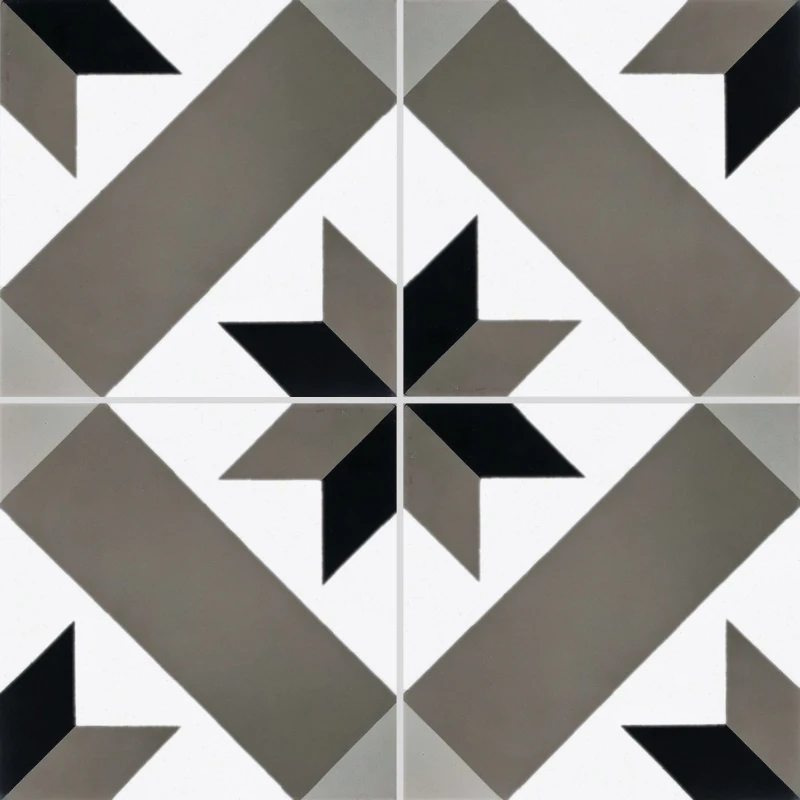 Le carreau de ciment CARODECO référence 1150-5 séduit par son motif géométrique élégant formant une étoile centrale, dans des tons noir, gris et blanc. Inspiré du style vintage et des carreaux traditionnels, il apporte du caractère et une touche graphique à vos sols et murs. Idéal pour une cuisine, une salle de bain ou un espace de vie, ce carreau décoratif permet de créer des ambiances modernes ou rétro selon vos envies. Résistant et intemporel, il s’intègre parfaitement dans les projets de rénovation comme dans les intérieurs contemporains.
