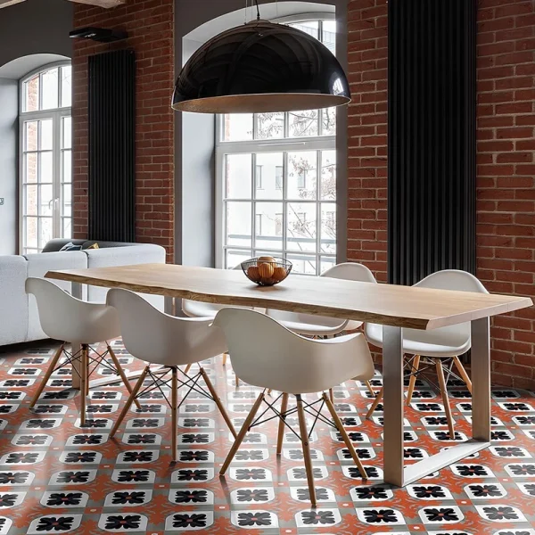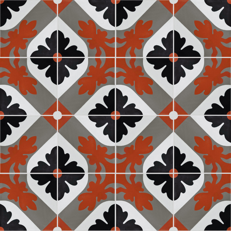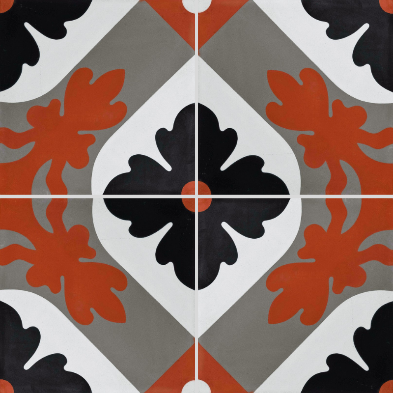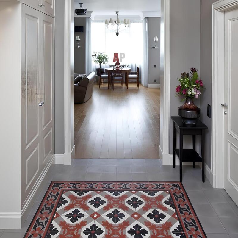 Apportez du caractère à votre intérieur avec le carreau de ciment CARODECO référence 640-3. Son motif graphique floral noir, gris et rouge, sublimé par un fond blanc, crée un sol à la fois élégant et chaleureux. Parfait pour une décoration au style industriel, contemporain ou vintage, ce carreau de ciment s’intègre idéalement dans une salle à manger, une cuisine ou un salon. Associé à des matériaux bruts comme le bois et la brique, il renforce l’authenticité et le cachet de votre espace tout en offrant une grande durabilité.