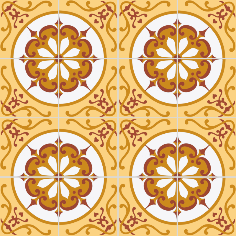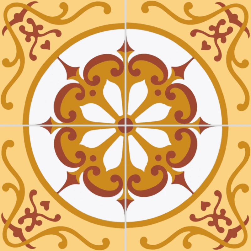 Le carreau de ciment CARODECO 7000-1 se distingue par son motif floral circulaire riche en détails et ses teintes chaleureuses de jaune et de terracotta. Inspiré des carreaux de ciment traditionnels, il apporte une touche décorative élégante et authentique à vos espaces intérieurs.