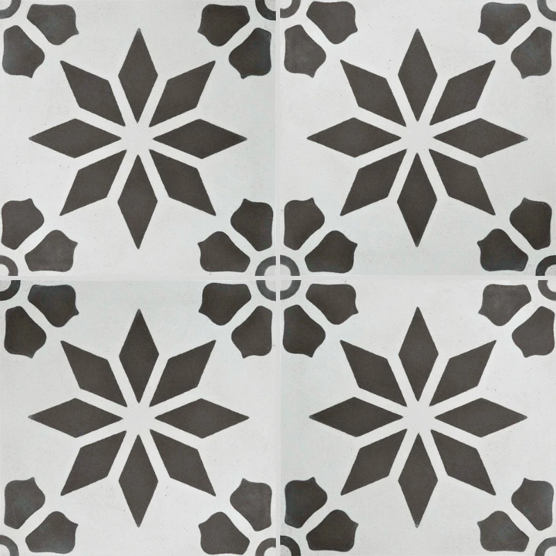Le carreau de ciment CARODECO référence 7190-1 séduit par son motif étoile gris délicatement dessiné sur un fond blanc lumineux. Ce design graphique, à la fois sobre et élégant, s’intègre parfaitement dans des intérieurs modernes, scandinaves ou classiques.