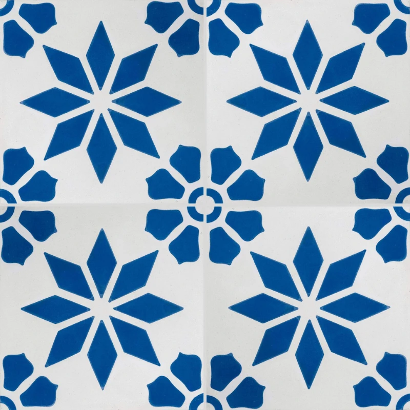 Ce carreau décoratif séduit par son design équilibré, mêlant formes florales et étoiles géométriques pour un rendu harmonieux et dynamique. Idéal en crédence de cuisine, en revêtement mural ou au sol, il permet de structurer l’espace tout en apportant du cachet.