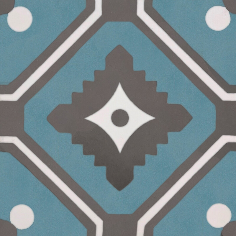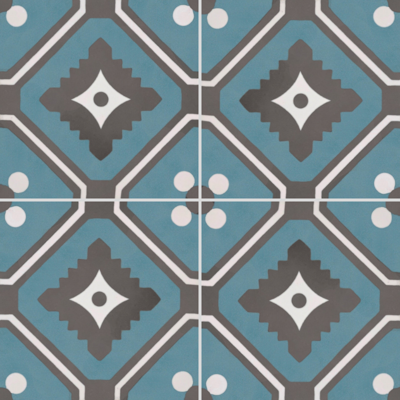 Apportez une touche d’élégance artisanale à vos espaces avec le carreau de ciment 7200-3, un modèle au style graphique unique. Son motif géométrique subtil, composé de losanges et de formes florales stylisées, joue avec des contrastes harmonieux de bleu minéral, de gris anthracite et de blanc. Ce design intemporel crée une ambiance raffinée et authentique, parfaite pour sublimer aussi bien un intérieur moderne qu’une décoration plus traditionnelle.