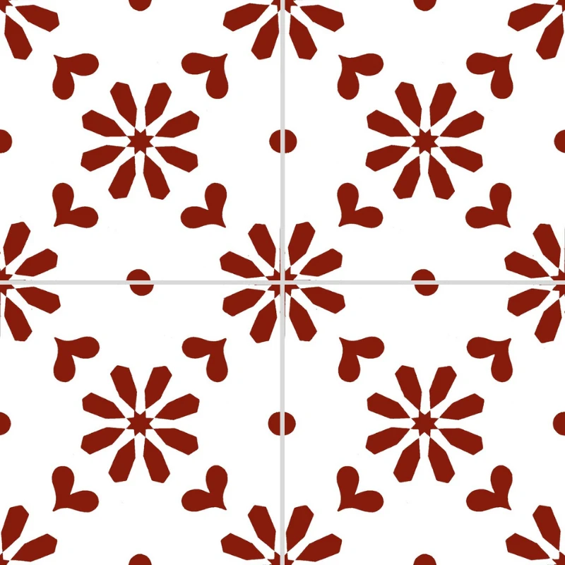 Apportez du caractère et une touche d’authenticité à votre intérieur avec le carreau Azulejos 1. Inspiré des motifs traditionnels du sud de l’Europe, ce carreau décoratif se distingue par ses formes géométriques florales et ses touches graphiques rouges sur fond clair, créant un contraste à la fois chaleureux et raffiné.