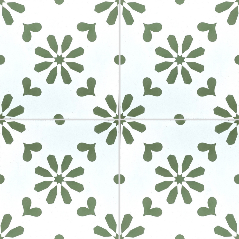 Carreau ciment AZULEJOS 2 – Élégance graphique au motif floral vert
