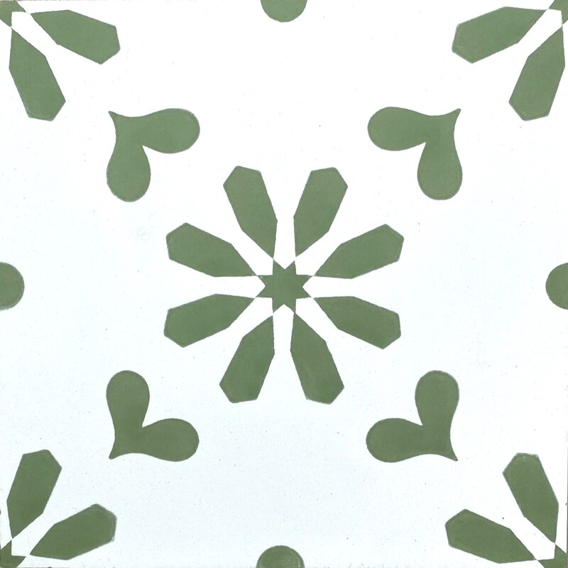 Apportez du caractère à vos espaces avec le carreau AZULEJOS 2, un modèle décoratif inspiré des motifs traditionnels méditerranéens. Son design géométrique et floral, composé d’étoiles stylisées et de formes organiques vertes sur fond clair, crée un rendu à la fois authentique et contemporain.
