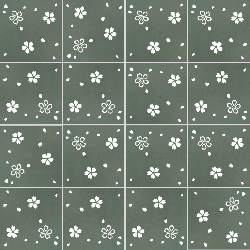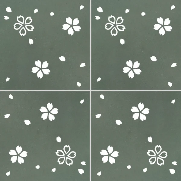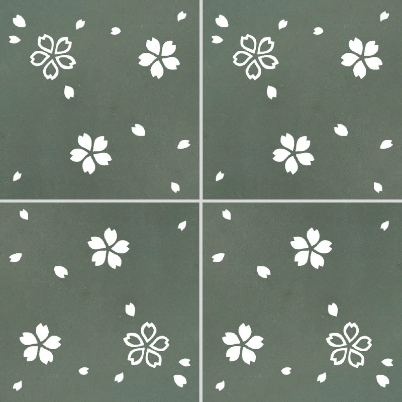 Le carreau SAKURA 2 apporte une touche poétique et raffinée à vos espaces grâce à son motif inspiré des fleurs de cerisier japonaises. Sur un fond vert doux, les pétales blancs délicatement dispersés créent un effet naturel et apaisant, idéal pour insuffler une ambiance zen et intemporelle dans votre décoration.