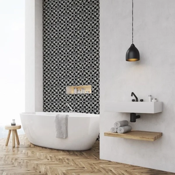 Apportez du caractère à votre intérieur avec les carreaux de ciment CARODECO référence SH109-4. Ce modèle au design noir et blanc met en valeur un motif floral symétrique tendance art déco élégant, idéal pour créer une ambiance à la fois classique et contemporaine. Parfait pour les sols et murs, il s’intègre aussi bien dans une cuisine, une salle de bain ou un espace de vie. Son style graphique fort permet de structurer l’espace et d’ajouter une touche décorative unique. Ce carreau de ciment est un choix esthétique durable pour sublimer votre décoration intérieure.