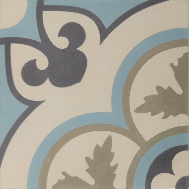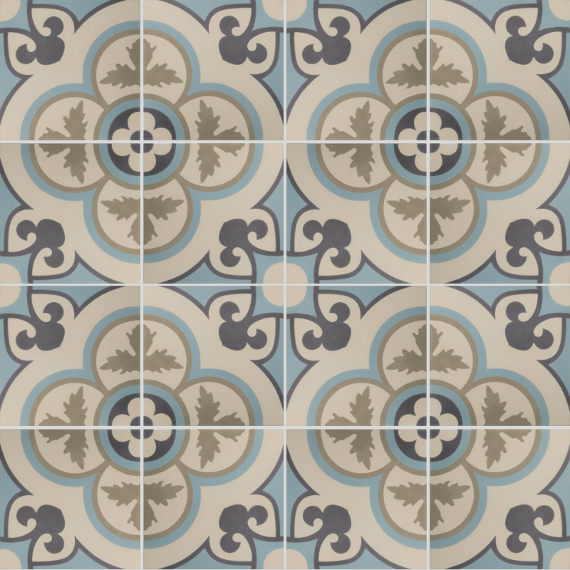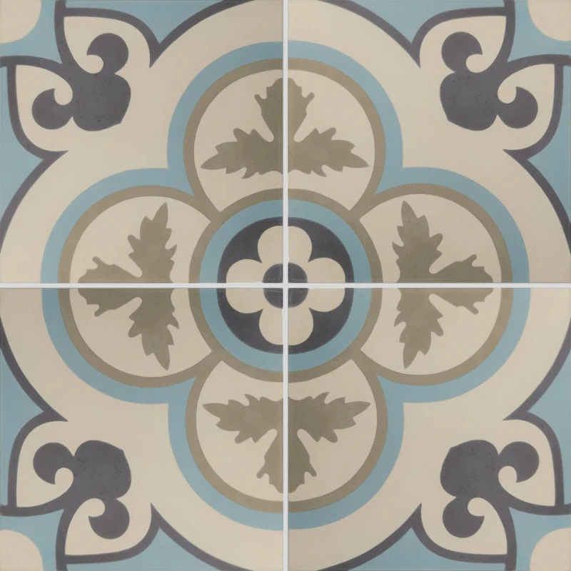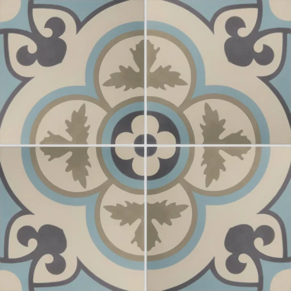 Le carreau de ciment CARODECO SH5001-7 se distingue par son motif floral central harmonieux, inspiré des carreaux anciens, dans des teintes douces de beige, gris et bleu. Son design équilibré apporte une touche élégante et apaisante à votre intérieur.