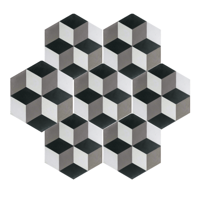 Véritables carreaux de ciment décorés, sols et murs – HEXAGONE 8710-3
