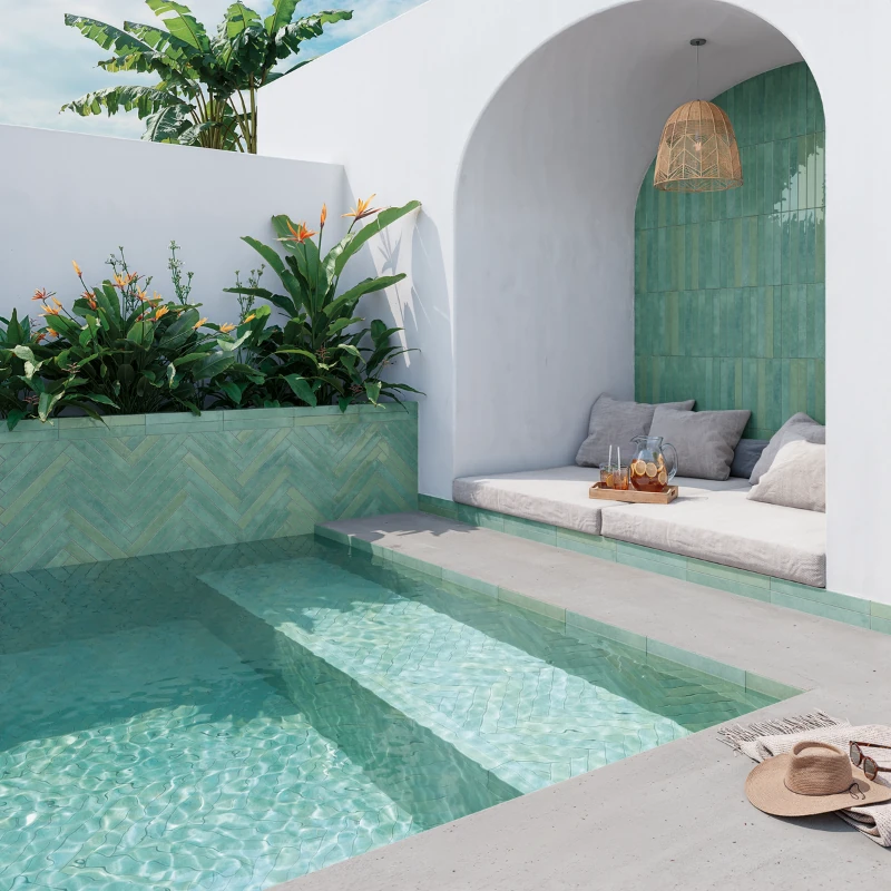 Le carrelage Mixtura Lagoon brillant de Carodeco séduit par son coloris vert lagon lumineux qui évoque des eaux cristallines et apporte une touche d’évasion à vos espaces. Sa finition brillante capte la lumière et intensifie la profondeur des teintes pour un rendu élégant et contemporain. Polyvalent, il est parfaitement adapté aux sols et murs, en intérieur comme en extérieur, et convient idéalement aux piscines et leurs abords grâce à sa résistance à l’eau, aux variations climatiques et à l’usure.
